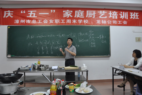 從2014年4月21日起,每逢周一晚上,公司幾十名廚藝愛好者都會(huì)興致勃勃地聚集在漳州市總工會(huì)職工業(yè)余學(xué)校,一起認(rèn)認(rèn)真真地學(xué)習(xí)廚藝,捧著筆記本仔細(xì)記下授課老師講解的做菜要點(diǎn),睜大眼睛盯著授課老師的現(xiàn)場(chǎng)操作,從烹飪的基礎(chǔ)知識(shí)、刀功的基本要領(lǐng)、配菜的基本方法到一道道葷素搭配、家常可見的美味佳肴如芝麻雞、排糖醋肉、紅燒魚塊、椒鹽海蠣、松仁玉米、沙司茄子等,都生怕落下一個(gè)小小的細(xì)節(jié)……