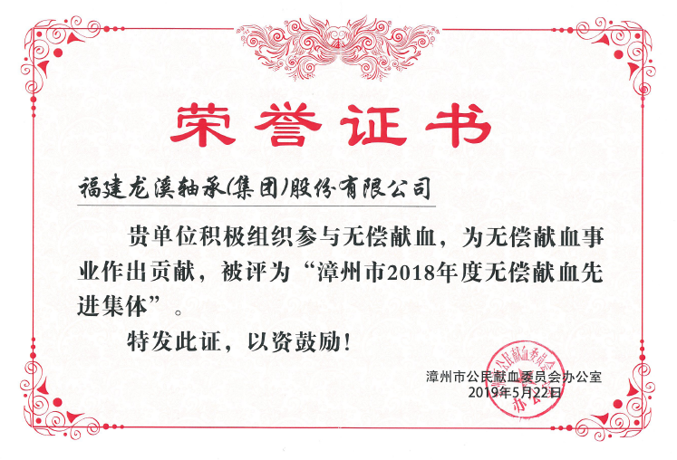 公司榮獲“漳州市2018年度無(wú)償獻(xiàn)血先進(jìn)集體”稱號(hào)