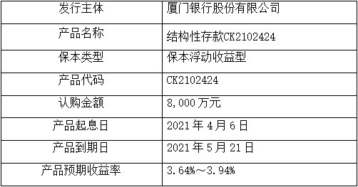 ?本次委托理財(cái)金額:委托廈門(mén)銀行理財(cái)8,000萬(wàn)元。