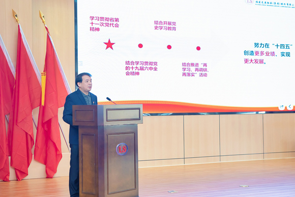 2021年12月31日,龍軸集團黨委在大禮堂召開福建省第十一次黨代會精神宣講會。公司黨委書記、董事長陳晉輝作了題為《征程萬里風正勁 求實奮進譜新篇》宣講報告。公司領導班子成員、總經理助理、中層主管、專業技術職務(職等)、高級業務主辦、業務主辦(業務組長)等參會。宣講會由公司黨委副書記劉明福主持。