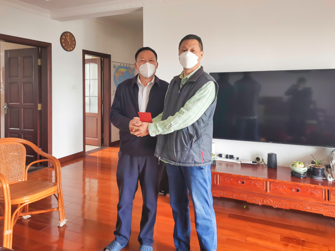 走訪過程中,慰問組每到一處,都噓寒問暖,關切地詢問他們的身體、生活、家庭等情況,傾聽他們的所想所盼,囑咐他們好好保重身體,送上慰問金,并致以節日的問候和祝福,切實將集團的關愛和溫暖傳遞到他們心中。