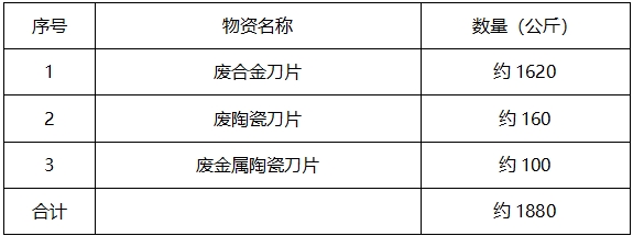 (三)項(xiàng)目?jī)?nèi)容:福建龍溪軸承(集團(tuán))股份有限公司廢刀片出售,總量約1880公斤。