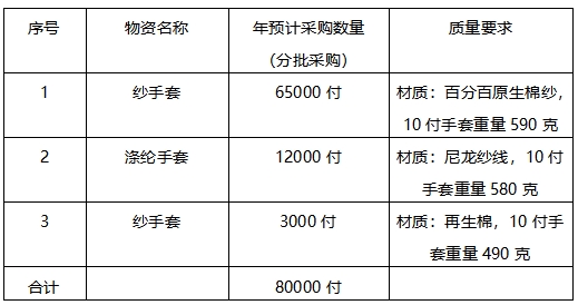 (一)項(xiàng)目名稱:紗手套、滌綸手套招標(biāo)
