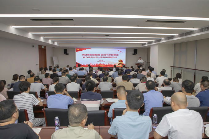 6月26日,集團黨委書記、董事長陳晉輝以《學紀明責促發展、忠誠干凈擔使命,奮力建設世界一流專精特新企業》為題講授專題黨課。集團高管、中層管理人員、權屬企業高管參加。