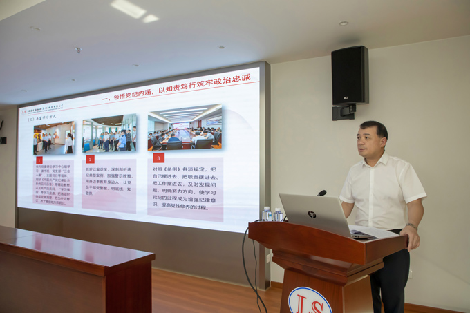 陳晉輝從“領悟黨紀內涵,以知責篤行筑牢政治忠誠”“明晰紀律要求,以明責敢為落實主體責任”“涵養清正風氣,以擔責奮進推動公司發展”等三方面進行了深入闡述。他指出,黨的紀律是黨的各級組織和全體黨員必須遵守的行為規則,全面深入學習黨的紀律是每一名黨員和領導干部必須完成的政治任務。公司黨員干部要堅持“學”在先、“悟”在深、“踐”在實,真正領會黨的紀律的實質和內在要求,進一步強化紀律意識、加強自我約束、提高免疫能力,增強政治定力、紀律定力、道德定力、抵腐定力。