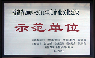 2012年9月28日,福建省委宣傳部召開全省企業(yè)文化建設(shè)工作經(jīng)驗交流電視電話會議,公司被授予“2009-2011年度福建省企業(yè)文化建設(shè)示范單位”,福建省委常委、宣傳部長袁榮祥出席了福州主會場會議并發(fā)表講話,福建省政協(xié)副主席李川主持會議。