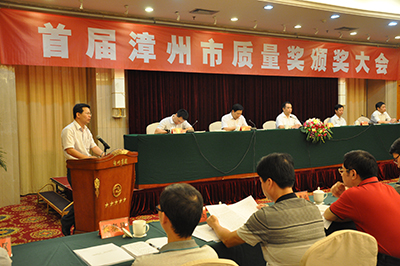 2012年9月28日,漳州市政府在漳州賓館隆重召開首屆漳州市質(zhì)量獎頒獎大會,漳州市質(zhì)量獎評審委員會委員單位、各縣(市、區(qū))政府、各開發(fā)區(qū)分管領(lǐng)導(dǎo)、質(zhì)監(jiān)部門領(lǐng)導(dǎo)及列入《漳州市爭創(chuàng)省、市質(zhì)量獎三年滾動計劃》的企業(yè)代表100多人參加會議,副市長洪仕建出席會議并發(fā)表講話,他充分肯定了漳州市質(zhì)量工作的顯著成效,并對全市質(zhì)量工作提出新要求。