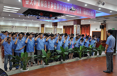 會議最后,曾凡沛董事長發(fā)表了動員講話并宣布精益項目正式啟動。他強調(diào),召開誓師大會的目的就是要彰顯公司對精益項目導(dǎo)入的高度重視和實施的堅定信心和決心。公司目前的生產(chǎn)管理、人力資源、文化及管理團隊等均還不夠完善,員工普遍缺乏危機意識、創(chuàng)新意識和責(zé)任意識。精益項目的導(dǎo)入是改變公司現(xiàn)狀、應(yīng)對競爭的需要,是企業(yè)生存和發(fā)展的需要,是每個員工提高收入、實現(xiàn)職業(yè)生涯的需要。