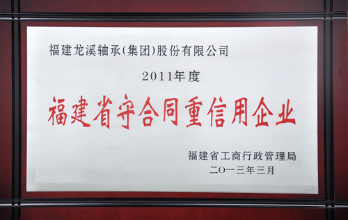 近日,公司在福建省工商局2011年度福建省守合同重信用企業(yè)創(chuàng)建活動(dòng)中獲得“福建省守合同重信用企業(yè)”榮譽(yù)稱(chēng)號(hào)。
