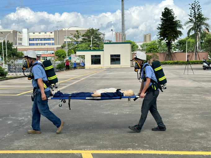 陳志雄向參加人員強調了應急演練的紀律,并宣布演練開始。接到指令后,各應急小組按照預案中的緊急報警、緊急疏散、應急救護和現場警戒等程序有條不紊地展開演練。