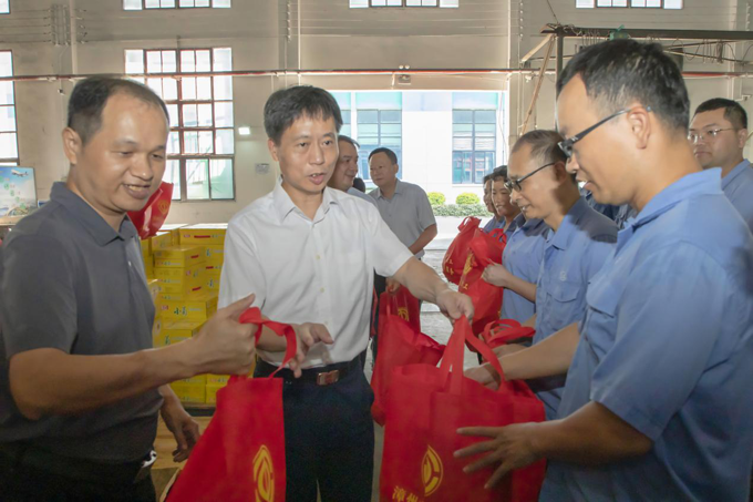 入夏以來,持續的高溫天氣讓一線勞動者的工作更加辛苦。2023年7月25日,龍軸集團黨委書記、董事長陳晉輝帶領班子成員分四組深入生產車間開展“送清涼”慰問活動。