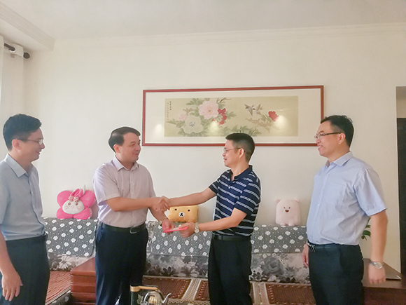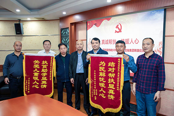 2021年4月19日,漳州市平和縣秀峰鄉坪東村村支書、村長及坪東小學校長一行到公司贈送錦旗,感謝公司三年多來對他們的幫扶。公司黨委書記、董事長陳晉輝,黨委副書記劉明福熱情接待坪東村一行。