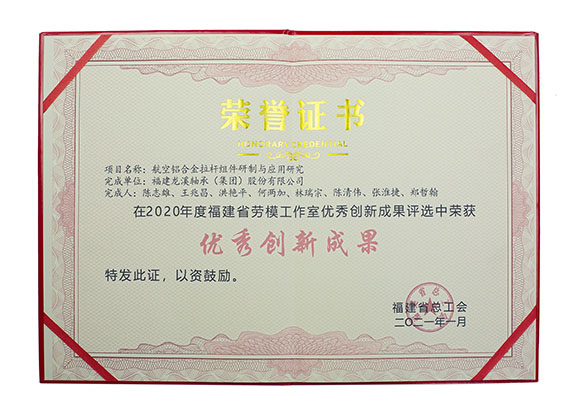 近日,福建省總工會發布了《關于命名“福建省(示范性)勞模工作室”和發布福建省勞模工作室優秀創新成果的通知》,我司陳志雄勞模工作室被命名為“福建省示范性勞模工作室”,由陳志雄帶領團隊完成的“航空鋁合金拉桿組件研制與應用研究”項目被授予“福建省勞模工作室優秀創新成果”榮譽稱號。(宣傳部吳志聰撰稿)