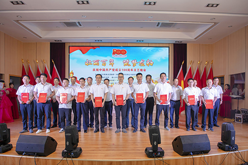 為熱烈慶祝中國共產黨成立100周年,謳歌黨的豐功偉績和偉大成就,展現在黨的領導下龍軸自強不息、闊步前行的精神風貌,2021年6月29日晚,由公司黨委主辦、龍軸藝術團及春之聲藝術團協辦的“壯麗百年 筑夢龍軸”慶祝中國共產黨成立100周年文藝晚會在藍田三廠區龍軸集團大禮堂隆重舉行。漳州市政府辦副主任吳維桑、漳州市國資委黨委委員、二級調研員盧宗金、九龍江集團黨委副書記魏育健等嘉賓,公司黨委書記、董事長陳晉輝及領導班子其他成員出席晚會,黨總支、黨支部負責人,中層干部、業務主管及“兩先一優”代表等參加。
