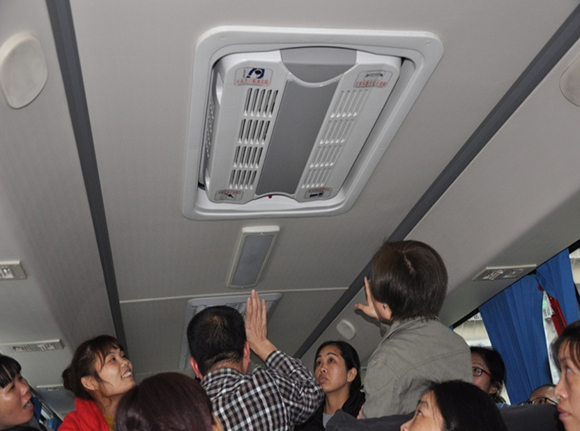 首先由大巴車駕駛員講解大巴應急門、車頂窗的開啟方法、安全錘的使用方法及滅火器擺放位置,然后由環(huán)安部安全員講解滅火器的操作及使用規(guī)范和后窗玻璃逃生方法。現場演練模擬公司通勤廠車因故障著火并迅速蔓延,車廂內濃煙滾滾,車門因電氣故障無法打開,大巴駕駛員立即打開應急車門,組織乘車員工有序撤離,同時向綜合部主管報告事故情況。綜合部主管判斷現場情況后,立即啟動《綜合應急預案》,組織各應急救援小組立即趕赴現場,展開應急響應。
