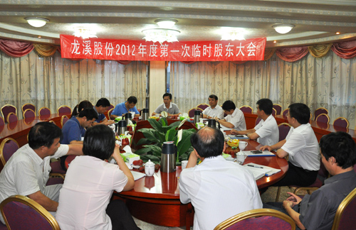 2012年6月18日,董事長曾凡沛在公司三樓會議室主持召開2012年第一次臨時股東大會,公司股東及代表、董事、監事及高級管理人員出席會議,北京市中瑞律師事務所許軍利、陸彤彤律師對大會進行見證。會議審議并通過《關于公司符合非公開發行股票條件的議案》、《關于公司2012年度非公開發行股票方案的議案》、《關于本次非公開發行股票募集資金投資項目可行性分析報告的議案》、《董事會關于前次募集資金使用情況的專項報告的議案》、關于公司非公開發行股票預案的議案》、《關于公司2012年非公開發行股票涉及關聯交易事項的議案》、《福建龍溪軸承(集團)股份有限公司與漳州市九龍江建設有限公司之附生效條件股份認購合同》、《關于提請股東大會同意豁免控股股東漳州市九龍江建設有限公司要約收購義務的議案》、《關于擬對子公司增資的議案》、《關于提請股東大會授權董事會全權辦理本次非公開發行股票相關事宜的議案》等18項議案。