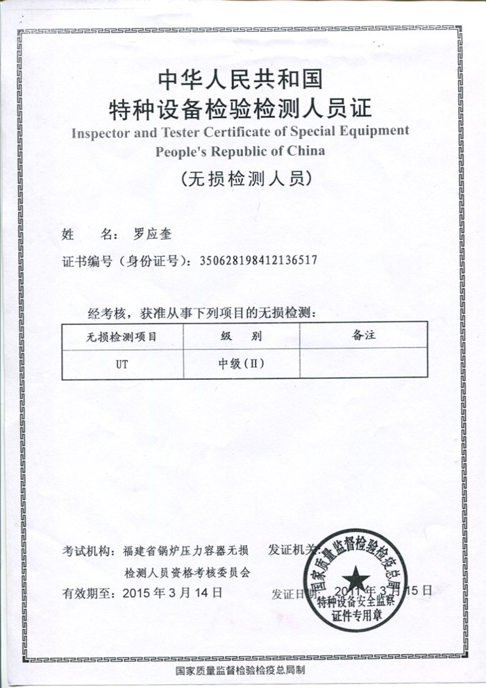 無(wú)損檢測(cè)證書