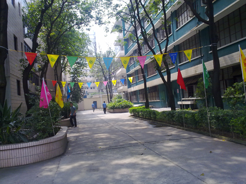 (2)廠區飄動宣傳安全生產知識和主題的刀旗、串旗。