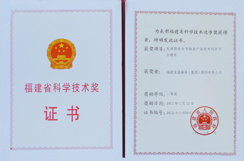 公司關節(jié)軸承產(chǎn)品技術創(chuàng)新平臺建設喜獲2012年度福建省科學技術進步獎一等獎